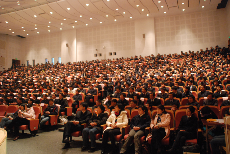 大會由上海金緯機械公司常務副總張汝忠先生主持,大會在一片祥和的氣氛中拉開序幕……。首先公司董事長何海潮先生分別對2008年度先進員工、***調試員工、2008年度***佳開發項目及經營管理好的公司給與表彰并頒發了獎金和證書。同時還頒發了公司員工子女考上大學的賀金。接著,由上海金緯機械公司總經理劉同清先生做了整個集團公司2008年的工作總結和2009年的工作安排,希望全體金緯人在公司董事會和董事長的領導下,以一種戰略的眼光,長遠的打算,用心,持久,快速,有序的工作態度,快樂的工作!然后由各***公司總經理發言,總結了08年度工作并通報09年銷售、生產目標以及經營計劃。
